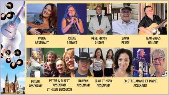 Paula Arsenault, Jolène Gallant, Père Firmin Dildom, David Perry, Jean-Eudes Gallant, Melvin Arsenault, Peter & Albert Arsenault et Helen Bergeron, Dawson Arsenault, Leah & Maya Arsenault ainsi que Colette, Amand et Marie Arsenault.